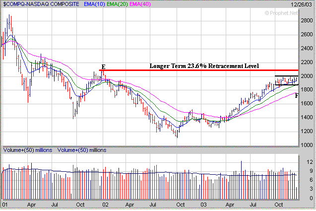 (2050) and high made in the early part of 2002 near 2100 (point E).