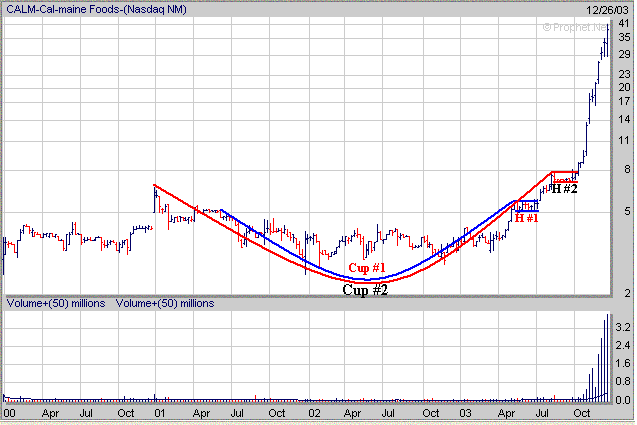 separate "Cup and Handle" patterns. CALM broke out of its 1st