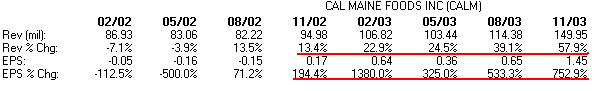 a favorable chart pattern. CALM is a good example of a stock which has