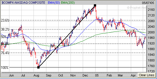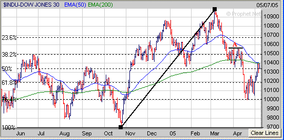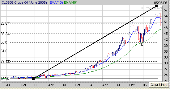 Retracement Levels (calculated from the 2003 low to the 2005 high) which may