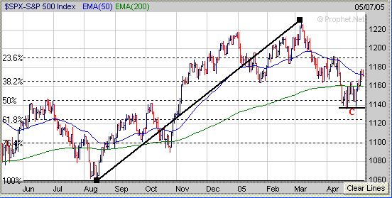 short term bottom near 1137 (point C). If the S&P 500 can break above