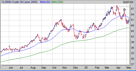 D). Meanwhile if the price of Crude Oil stalls out near its 50 Day EMA and